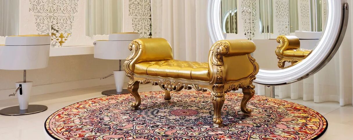 一块「沙漠沙丘」主题的刻纹装饰地毯,将多哈饶人的地域手工艺凸显无疑。