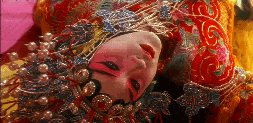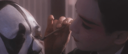 影片中,真是一个动乱颠覆的时代,从苟延残喘的晚清,到星光璀璨的民国,再到翻天覆地的新中国,几个人,恩恩怨怨爱爱恨恨沉沉浮浮,彼此纠缠,无法理清。张国荣扮演程蝶衣,程蝶衣又扮演虞姬,真是一段震撼人心的戏中戏,情中情。