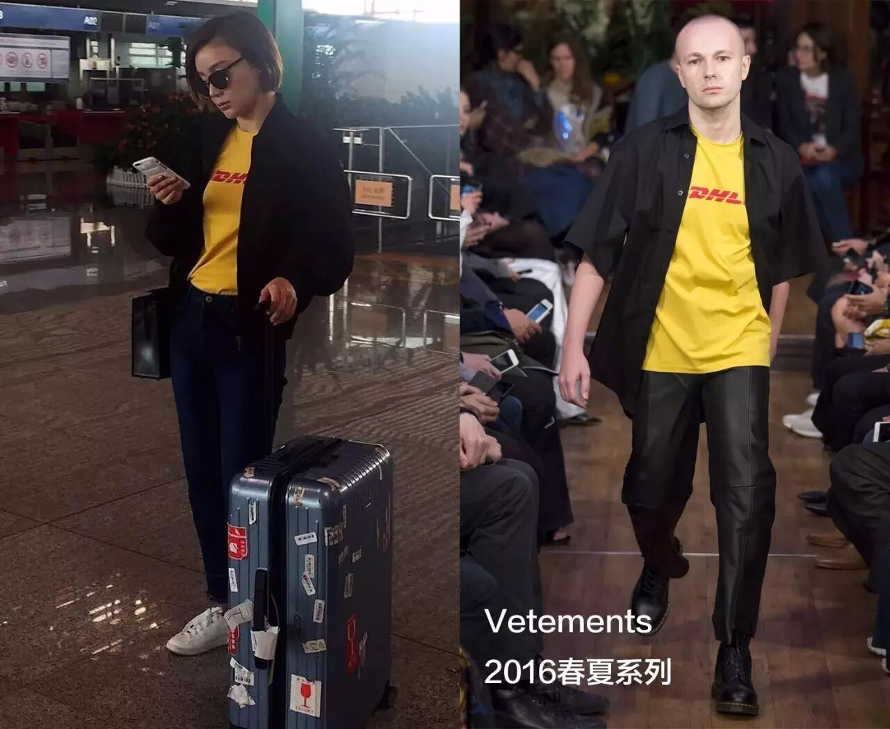 袁姗姗4号机场造型,又一枚Vetements中毒的快递女孩儿▼