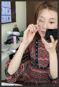 之前她眼睛看起来不够有神的原因之一是眼窝不够深,比较建议大家选用大地色系的眼影盘,眼影区域要大于眼线的部分,这样拉出外眼线时眼妆才会更生动