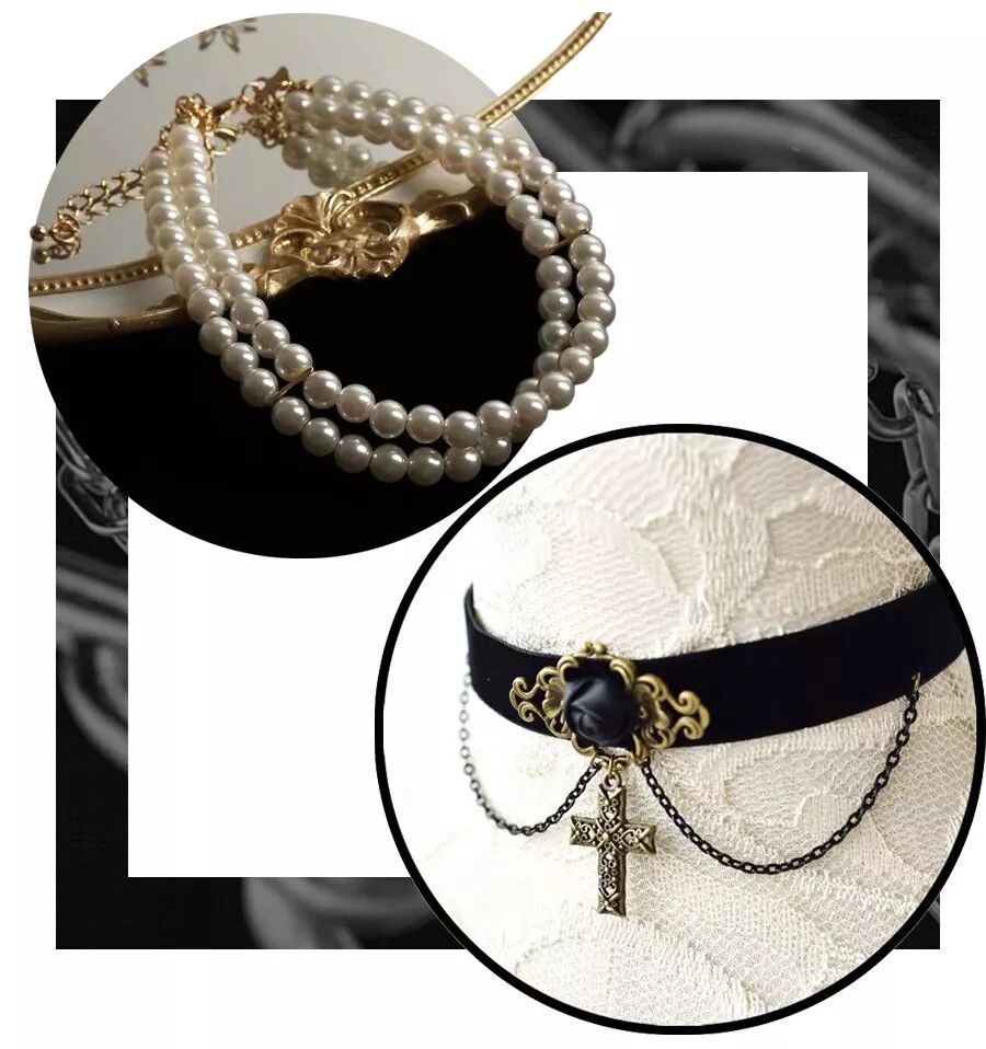 绑带、黑色蕾丝、丝绒都是常用元素,又丧又甜的感觉就出来了