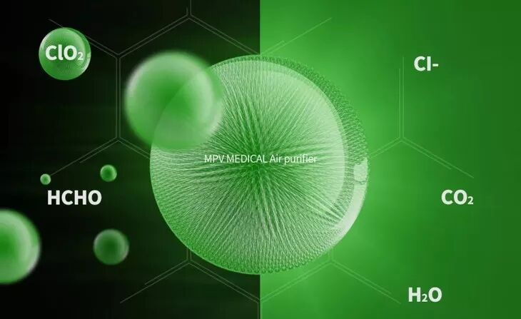 二氧化氯颗粒活性气体分子能够无间隙渗透,强效吸附,主动捕捉空气里的细菌、病毒及甲醛等有害气体。