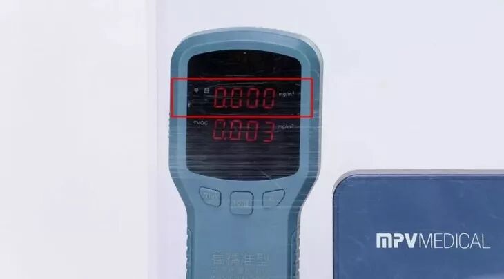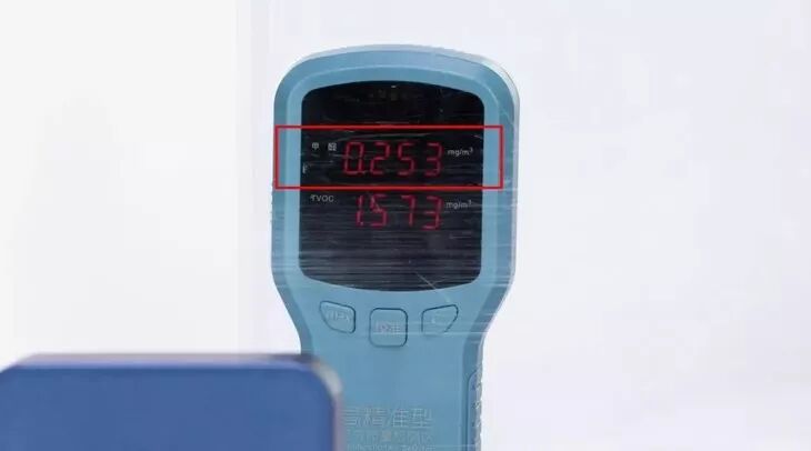 净化前,测试仪器甲醛数据为0.253mg/m³,国家甲醛标准为0.08mg/m³,甲醛已严重超标。