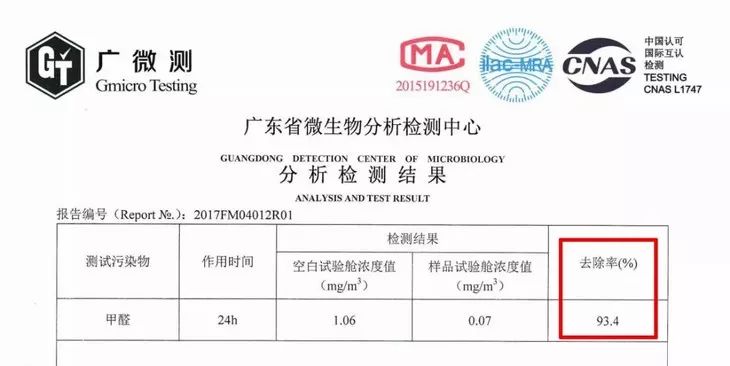 经过广东微生物分析检测中心报告,MPV无电净化器除甲醛效果高达93.4%。