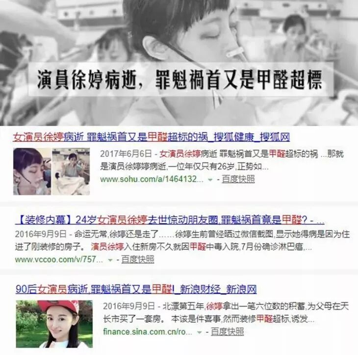 更有甚者,2016年,女演员徐婷去世搬进新房住了不到20天,检测出甲醛中毒,最后因患淋巴癌去世。