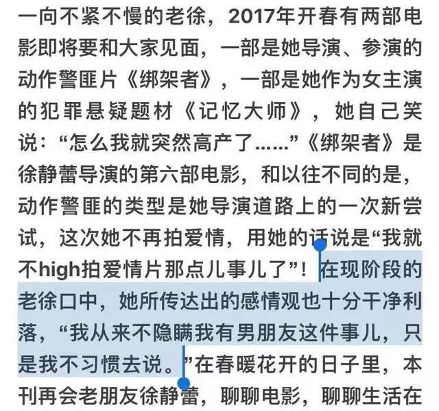 其实徐静蕾对待感情的态度从出道那天起就是如此,她不喜欢自己的私生活被拿出来讨论,每每提到感情,都是不会多谈的态度,而对于粉丝猜测的黄立行是否为其男友,其实她在早前的采访里早就给出过答案,“我并不否认有男友,只是我不习惯去说这个事”。