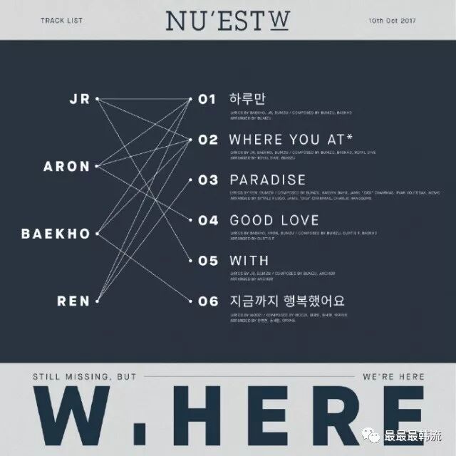 这次新东方的小分队除去了去碗的黄诸葛,加上了回归的大哥Aron。小分队的名字叫NU’EST W,W代表Wait的意思,等待着在碗里的黄诸葛回来。
