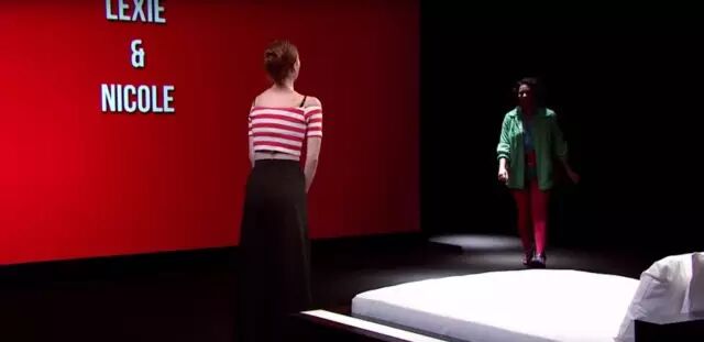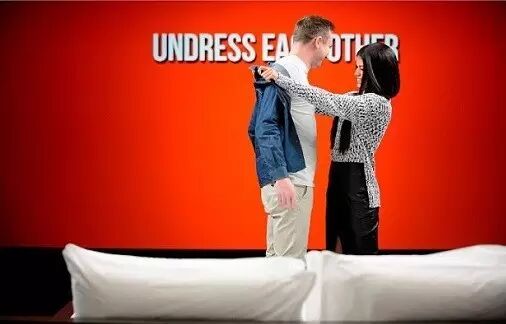 随后,床前的大屏幕会出现一些指示,鼓励嘉宾之间进行一些情感和身体的互动。