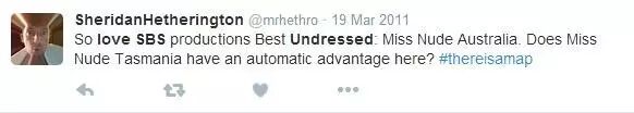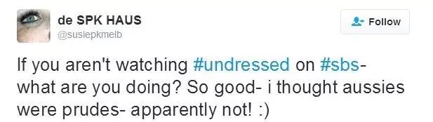 “这个节目太棒啦!我原来还以为澳洲人很保守,显然并不是!”