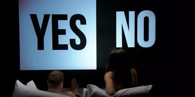 经过30分钟的床上时间后,两边的床头柜上各自升起一台显示器。如果双方都有好感,愿意继续下次的见面,就点击“Yes”,否则就是“NO”