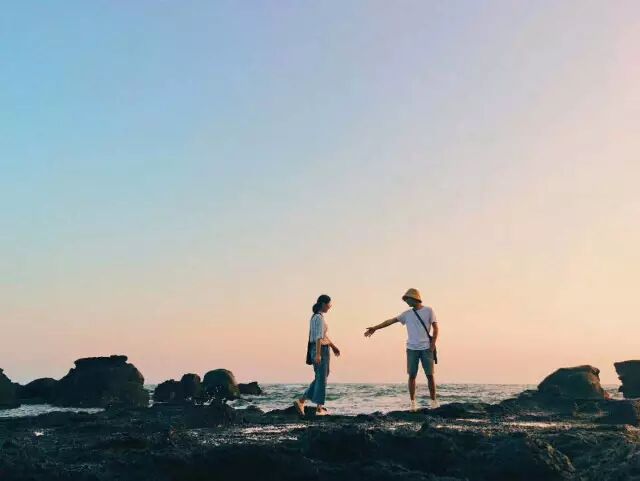 踩着礁石感受着海浪漫过脚踝的冰凉感,