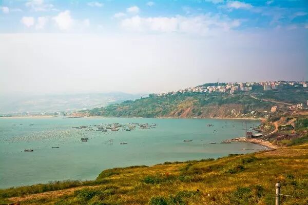 三面环海,背靠青山。