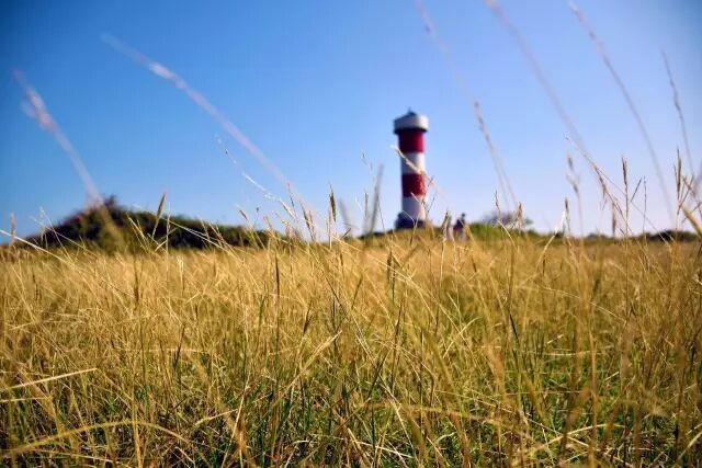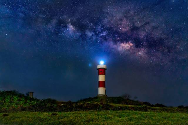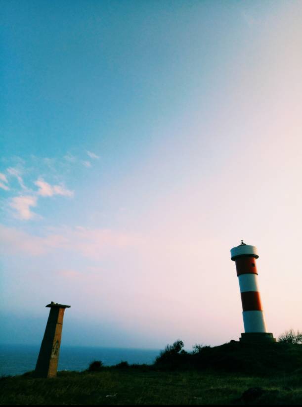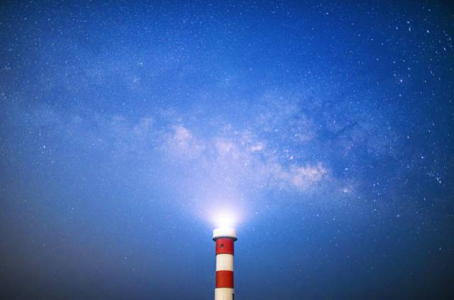 红白相间的灯塔立在高高的海的尽头,