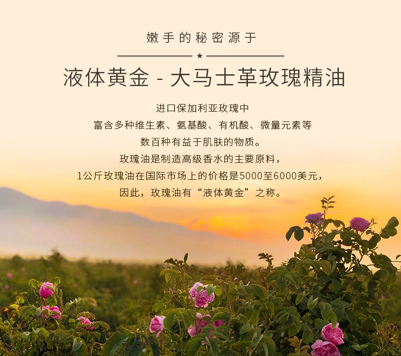同时蕴含纯正保加利亚玫瑰精油和甘油