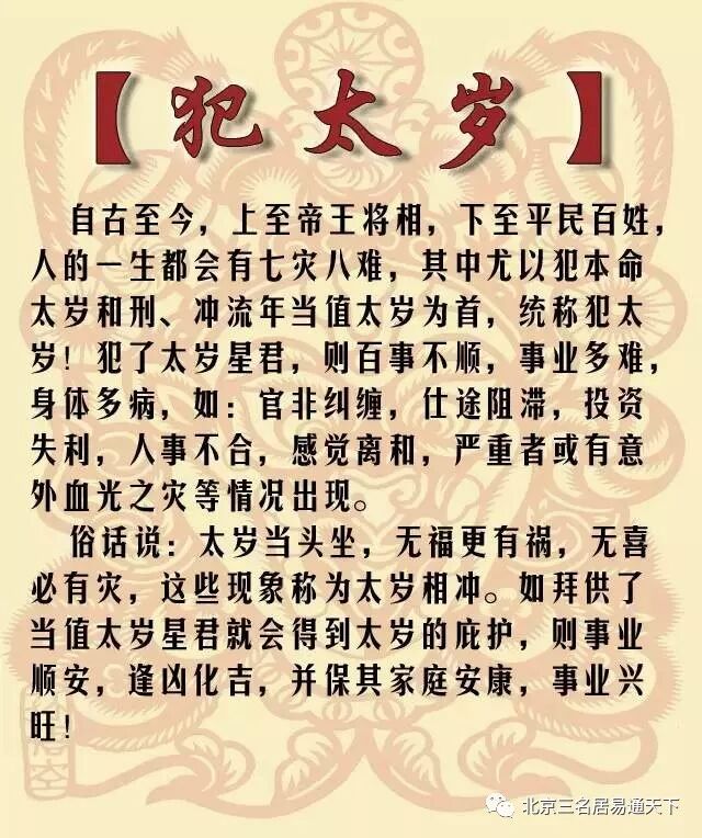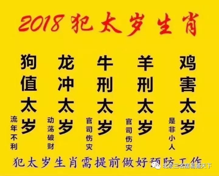 这就是2018年中有着命犯太岁的生肖类型。冲犯太岁后果非常严重!仕途受阻,官非纠缠,投资失利,婚姻不顺,更有甚者会有血光之灾等意外发生。
