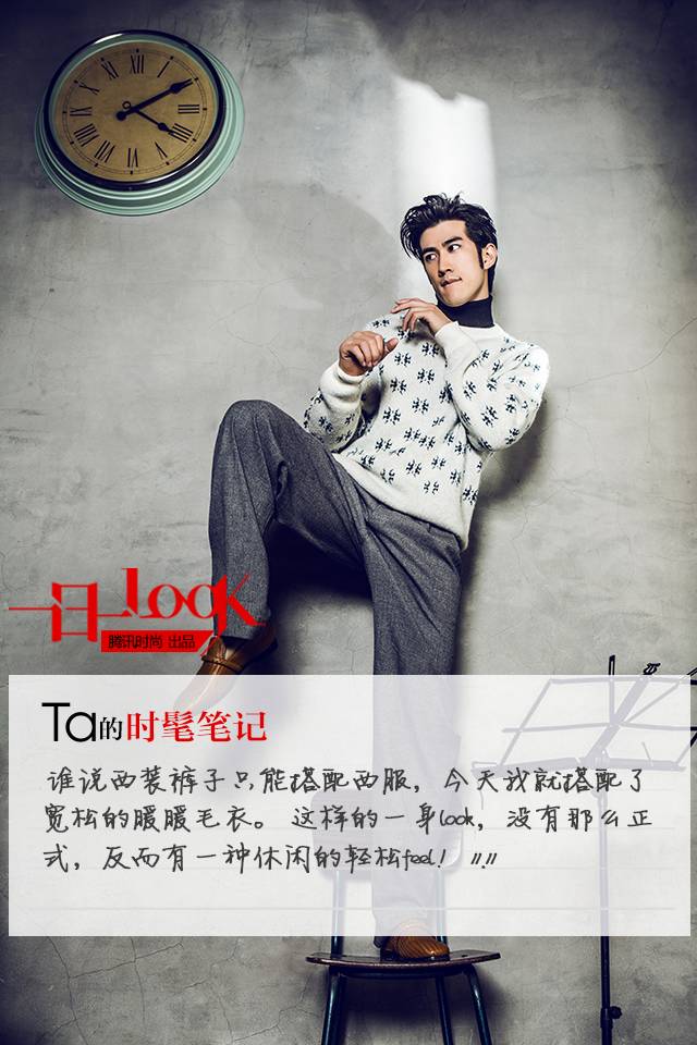 西服西裤的固定搭配绝对是“直男癌”的必备装扮!但是生活何必那么枯燥?当西裤“偶遇”休闲感十足的白色毛衣,整身look的效果都变得轻松和休闲,这个新年,你要暖暖的过!