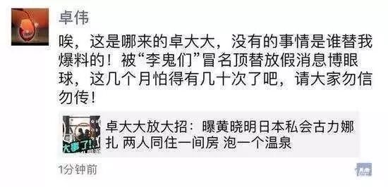 就在此时,卓伟本人亲自发朋友圈辟谣道称:说简直就是李逵遇上“李鬼”,有人假冒他的号来爆料
