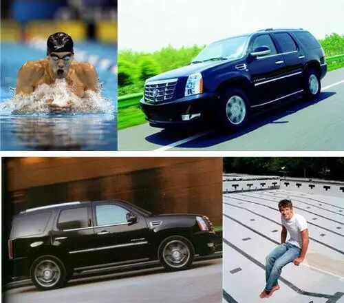 在雅典奥运会之前,菲尔普斯动用积蓄向二手车商购置了一台老款的凯迪拉克凯雷德大型SUV。据说这辆车的前主人也是一位明星,由于美国加州州长、著名的影星施瓦辛格。如今,这辆车伴随他一步步走向成功,已经是他生命中的伙伴,而盾形车标和巨大的橄榄枝冠确实象征着菲尔普斯“信念创造拥有”的完美成功之路。