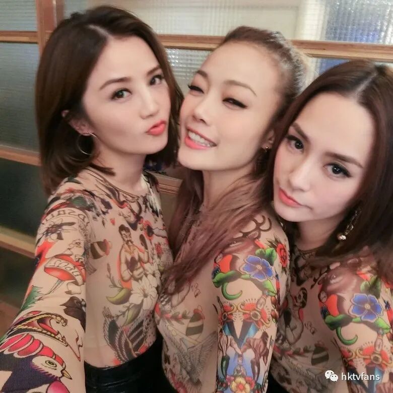 照片中阿Sa一身家居服,以紫色套装上阵,阿娇就一身黑色Look有型又够Chok,佢仲靠喺阿Sa膊头揽到实,两姊妹亲密无间。