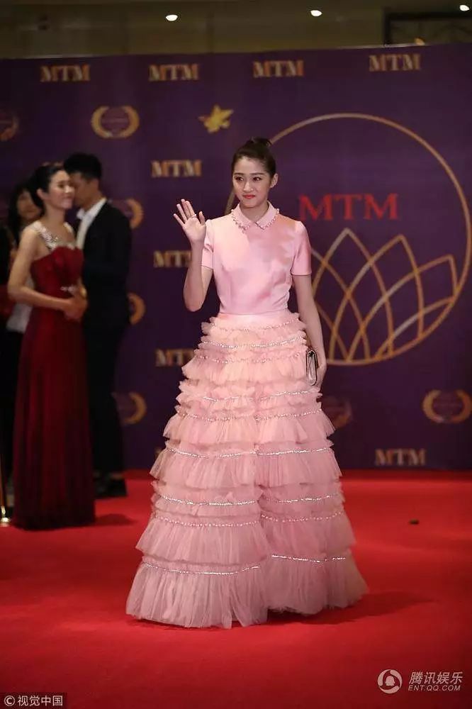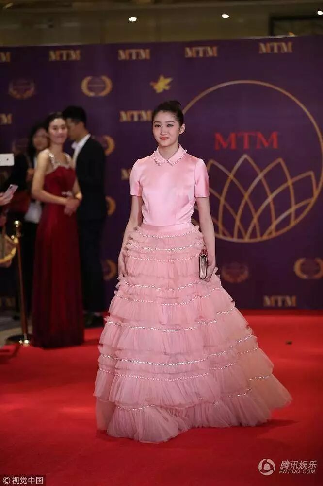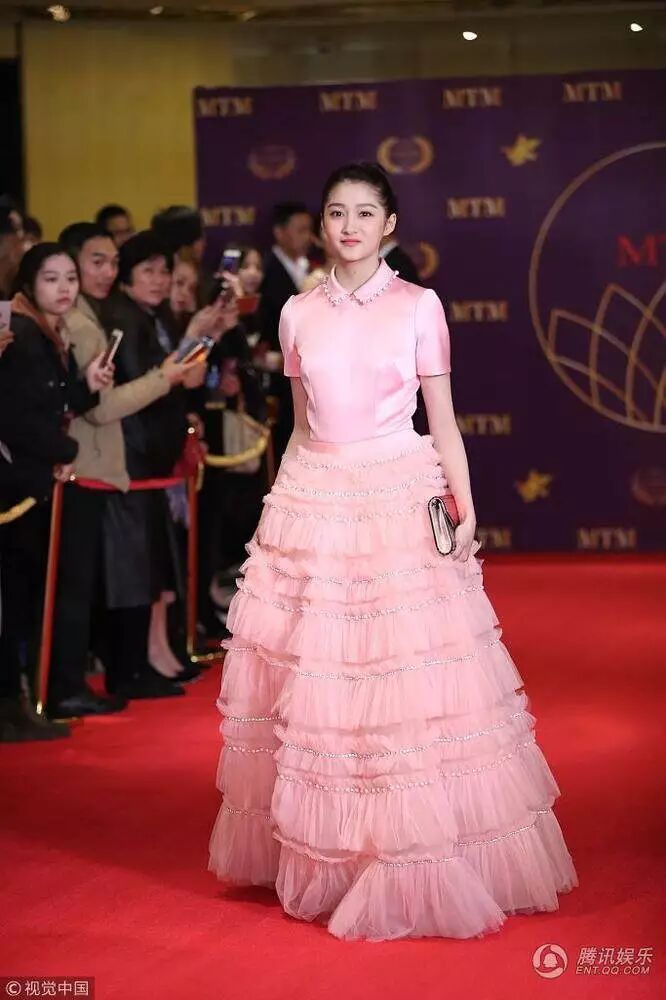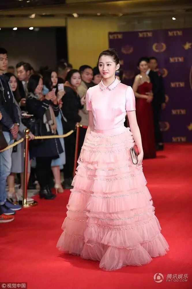 昨晚上澳门国际电视节,关晓彤的穿着很大胆啊,礼服整套粉红,小巧的领口,还用小珍珠镶了边,最耀眼的是裙摆,是一层一层的蛋糕式蓬蓬裙,就算是隔着屏幕,也能感受到扑面而来的中了粉红之毒的少女气息...
