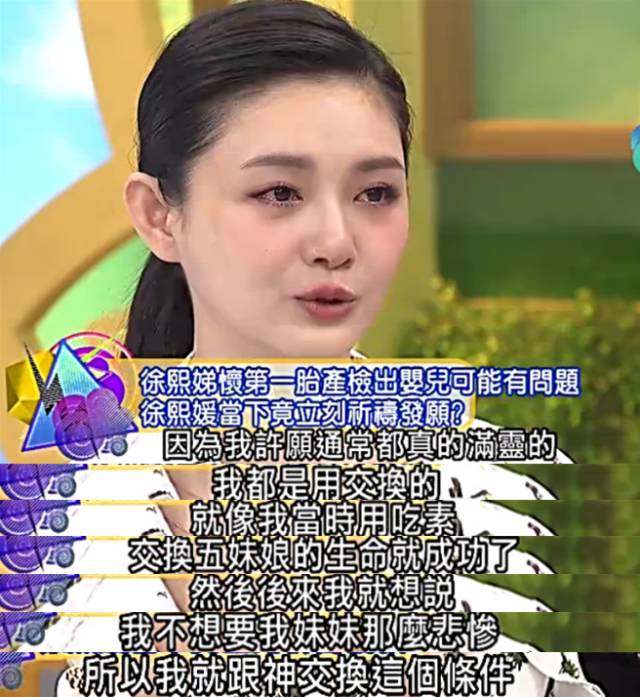 大S知道这件事的第一反应就是,跟她的神去祷告,如果徐家一定要有人生一个生病的小孩,让她来生,只要妹妹的小孩平安出生就行。