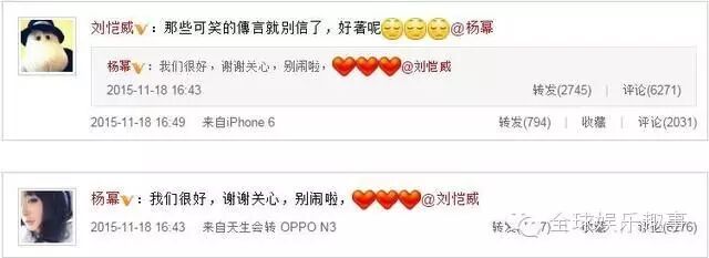 当时杨幂反驳说:上述的婚变经过完全是不实的谣言,强调夫妻俩关系好的很。