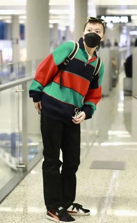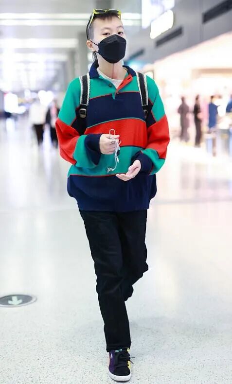 其实polo衫最一开始为了彰显自己高级的特点,很少会选用夸张艳丽的颜色,主要以低调简约的颜色为主,所以很多人对于POLO衫的印象是老气,甚至会觉得是中老年专属。但是窦靖童身上这件衣服就显得非常的活泼朝气,主要原因就在于,这件衣服的配色选用了高饱和度的绿色与红色,以及小面积黑色,构成经典的圣诞配色,告别单调,增添了一种复古的感觉。