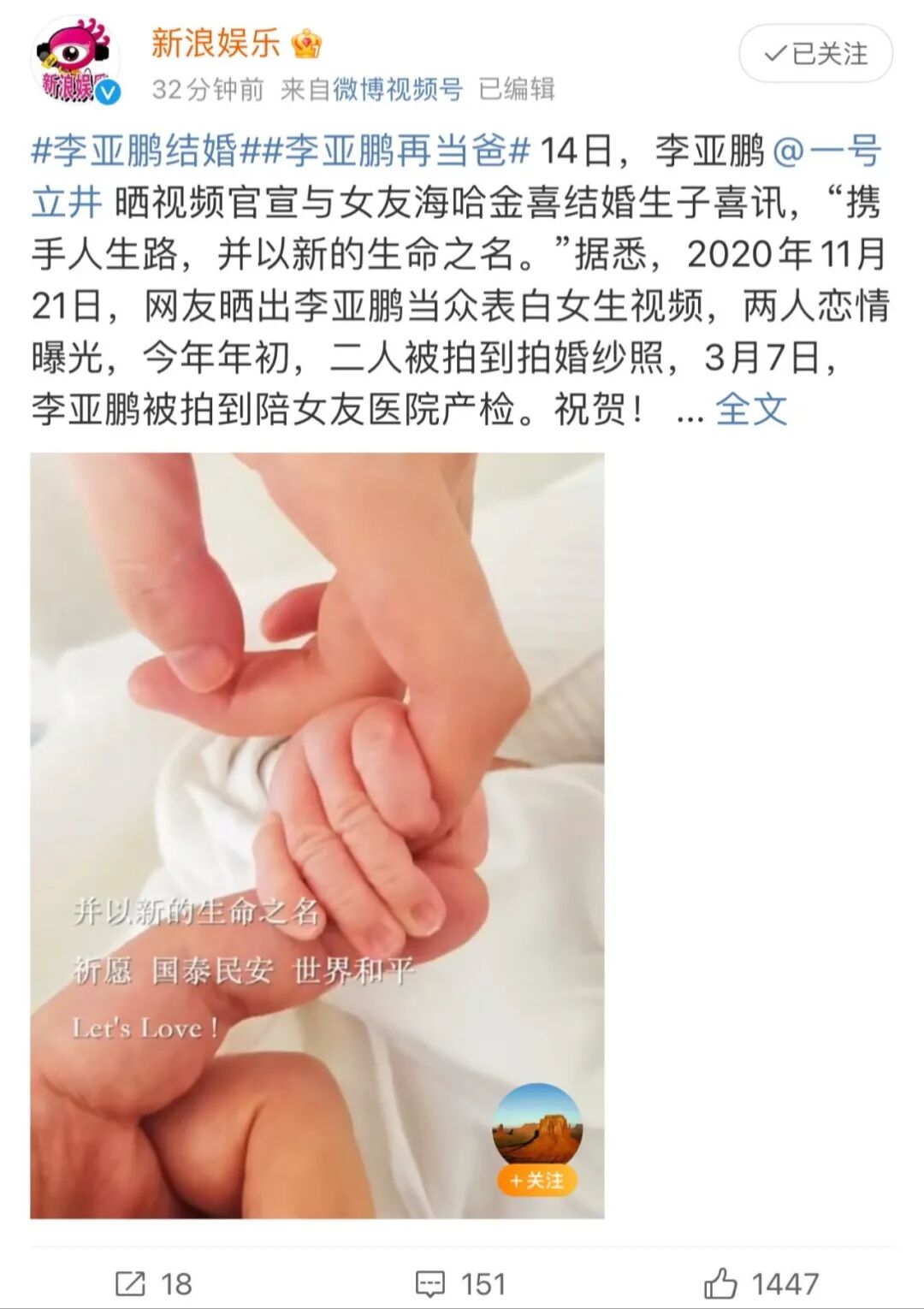 50岁的李亚鹏,又当爸了 温书先生 内地男星 2022-03-14 19:27:06 628 创作不易,用心坚持,欢迎请BaGua喝几杯爱心咖啡!打赏并支持本文 打赏并删除本文 来源:女神书馆ID:nvshenshuguan李亚鹏又当爸爸了。今天下午,李亚鹏突然官宣与女友海哈金喜结婚生子的喜讯。一句“携手人生路,并以新的生命之名。”昭告天下,属于他的新生命的到来。其实李亚鹏要有新孩子,早在前几天就有消息透露出来。3月7号,他被拍到现身妇产科。身边是新任女友,海哈金喜。女方穿着黑色长袄,肚子隆起明显。非单纯的胖,就是孕妇的样子。从妇产科出来后,到附近的餐馆吃面。据狗仔描述,海哈金喜往面里加了很多醋。于是根据“酸儿辣女”的迷信,网友已提前预祝李亚鹏老来得子。再恭喜李嫣又多了一个同父异母的弟弟。李嫣对父亲再婚,应是没有意见。此前就被偶遇过,李亚鹏带她跟女友见面。足见在亲友中,已经不是秘密。李亚鹏没公开过结婚事宜。不过前段日子去拍了婚纱照。海哈金喜身着露背婚纱,腰肢比当模特那会,粗了一些。拍摄间隙,李亚鹏还跟友人炫耀起自己的戒指。新婚的快乐,洋溢在脸上。此时距公布恋情,不过1年多。2020年11月,二人参加活动,公开宣布恋情。有网友录下视频,发到网上。视频中,李亚鹏拉着海哈金喜的手,宣布两人在一起了。十指紧扣,非常坚定。海哈金喜则尽显小女人的娇羞。之后两人便是出双入对,形影不离。李亚鹏带她见朋友,海哈金喜带他见父母。虽然相差19岁,但依偎时,也挡不住甜蜜。只不过,如今李亚鹏生子后才迟迟官宣。不禁让人诧异。要知道曾经的他,可高调得厉害。每一次恋爱,都巴不得全世界知道。现在静悄悄结婚、当爸,怎么变了? 李亚鹏不是个低调的人。做生意如此,做慈善如此,谈恋爱也如此。之所以吃瓜群众对他的情史,头头是道。缘于他从不避讳向观众展示。跟瞿颖在一起那会,他的名气远小于女方。但他不担心被骂是上位男和炒作。自顾地恩爱。拍《射雕英雄传》,瞿颖去探班。现场有粉丝围观,两人也照旧腻歪亲密。拍戏环境不好,瞿颖还为他大骂剧组。一天工作忙完,两小情侣就光明正大去下馆子。还是坐在餐厅外面。不怕被拍,也不拍被指点。参加采访,被问恋情问题,李亚鹏都是正面回答。还留下经典的形容“我是可乐,瞿颖是雪碧”。跟周迅就更是胆大包天。即便自己被怀疑是劈腿,也无所畏惧。《射雕英雄传》举行记者会,跟周迅手牵手出场。出来时,周迅不小心被门卡住了。李亚鹏赶紧上前安抚,还在记者面前摸人脸蛋。一点都不担心,这样一个小动作,会被记者添油加醋写成什么。《射雕》后,两人在《海滩》再次合作。参加活动,更加形影不离。记者的提问,也一直绕不开两人的感情。之后还出双入对,参加《小燕有约》。被媒体报道,在节目中眉来眼去,暗送秋波。连走在机场,都是手牵手。最后在《艺术人生》的访谈中,大方承认“我们在恋爱!”做了这些还不够。最厉害的高调,是把这两个女人写进书里,取名为《恋恋风尘》。作者虽不是他本人,但书是经过他授权出版的。里面很多内容,也都是他亲口传述。书本里还写到三角恋风波。书中说,“我没对媒体说过半个字,但瞿颖不一样,她太想倾诉......”气得瞿颖内涵他,“如果我真的酷爱倾诉,去年这时候,我就应该委托谁帮我出本畅销书”。李亚鹏似乎很享受,媒体聚焦下的恋爱。但这样的恋爱,就注定高压高危。果不其然,2003年9月份,李亚鹏周迅分手。分手对李亚鹏,没有多大影响。转眼他就盯上了咖位更大的女人——天后王菲。并且爱得更加高调。恨不得每天广而告之。跟周迅分手不久,李亚鹏就对王菲展开了疯狂追求。为讨王菲欢心,他每天发一百条笑话短信。王菲生日,在浦东陆家嘴盛摆宴席,他豪气买单。王菲举办全国巡回演唱会,他花100万买门票送人捧场。并且推掉很多戏约,一心跟着王菲。在刘嘉玲的生日宴上,得知王菲看中一台电脑,拍价10多万。刘嘉玲看穿他心意,故意13万拍下再转手给他。通过一路氪金的疯狂追求,最后成功抱得美人归。2005年,两人宣布结婚。结婚后,恩爱秀得更加疯狂。而且一定要在众多媒体在的公众场合。于是,王菲就经常在慈善宴会上,被李亚鹏“强吻”。例如2007年的慈善晚宴,王菲正认真看着台上的表演。毫无防备,李亚鹏的大脸突然出现,撅着个嘴就想要索吻。2009年,他又故技重施。在舞台上,正对着媒体朋友,捧起王菲的脸,就一个劲地嘬。王菲尴尬到四肢僵硬,完全是一副被迫的样子。2010年,在友人的生日宴上,李亚鹏搂着王菲的肩膀,上演恩爱,密不可分。2012年的芭莎慈善晚宴,众目睽睽下,眼含笑意,给王菲抹嘴唇。不过这举动跟前几年比,算是疏离了。也不怪,因为第二年两人就离婚了。完全是意料之内的结局。网友对他也早就不满。认为他一直在利用丈夫的身份,消费王菲的人气。一场场高调的作秀,像极了一场生意。只为宣传、造势、维护形象。而王菲却是不爱面对媒体的人。李亚鹏不懂,还常常拉着她上演鹣鲽情深。酒吧开业,让久未露面的王菲出场,就为带个流量。参加慈善晚宴也是。李亚鹏热情洋溢地招待每位来宾。拉着大家在背景板前开心合照。王菲不喜,表情冷酷,尽量往边上靠。见王菲如此,李亚鹏还努力把她拉到中心。气得王菲甩了他的手。那些年若不是为了女儿李嫣,王菲定不会每年都出席。最惨
