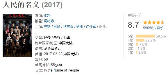 相信大家最近都被一部号称为史上最大尺度反腐大戏的《人民的名义》给刷频了,小凤君身边更是不时有人安利。这部热播大剧可谓是正面效应遍地开花,开播当日就收割3.5亿次收视率,豆瓣评分高达8.7分。