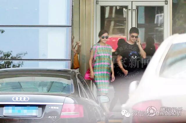 两小时后叶一茜和田亮夫妻再次出现,一同走出医院大门驱车离开。(图为叶一茜和田亮双双黑超遮面走出医院。)