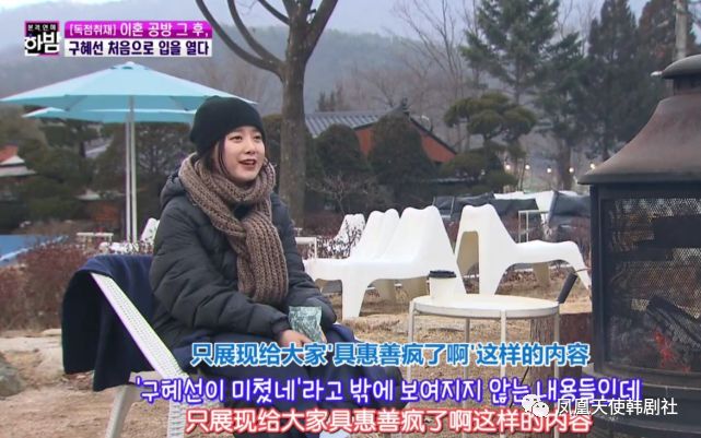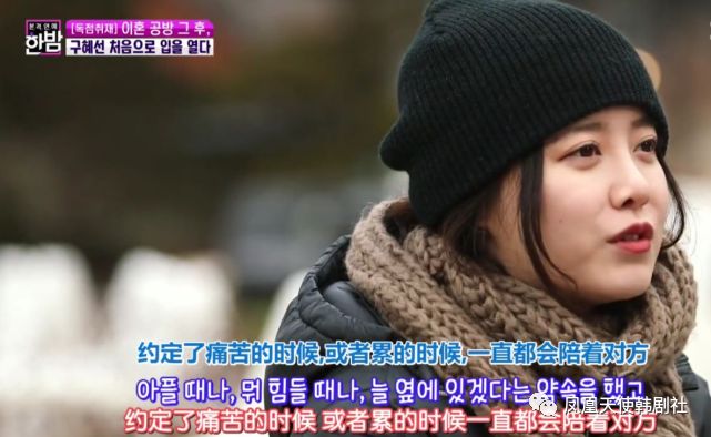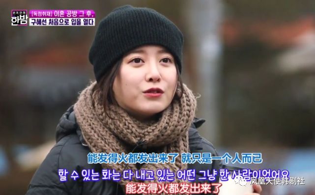 经历过一段失败的婚姻,她自己也有很大的落差。当初结婚的时候,她以为自己不会离婚。那时许下的承诺,双方承诺会陪着对方,似乎都变成了笑话。谈到这些,具惠善紧抿嘴唇,眼神也没有看镜头,似乎陷入了回想。