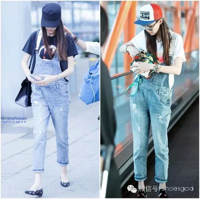 唐嫣穿休闲牛仔背带裤内搭T恤,无论是搭配尖头单鞋还是休闲平底鞋,头戴拼色棒球帽,时髦又俏皮可爱。