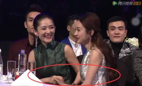 还有这张在某盛典上的截图,赵丽颖和谢娜见面以后,就紧紧的握住了对方的手,开始讲悄悄话,此刻一旁的凯凯王就像是一个电灯泡。