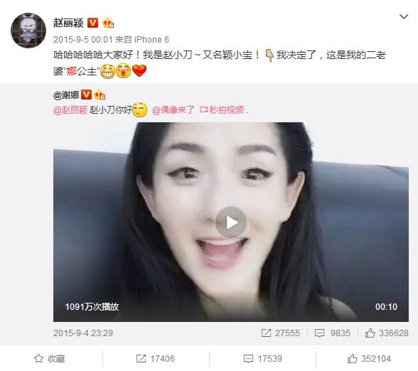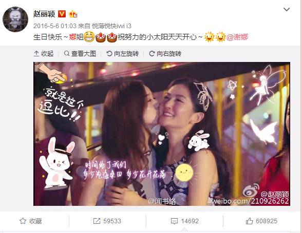 谢娜和赵丽颖总是会在微博上“秀恩爱”。
