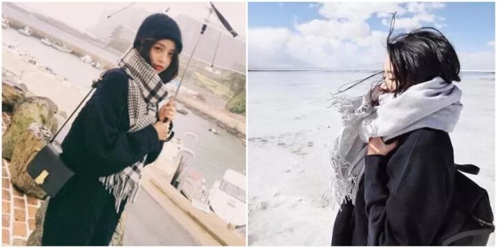 冬天搭配围巾也丝毫不用担心发型乱哦~