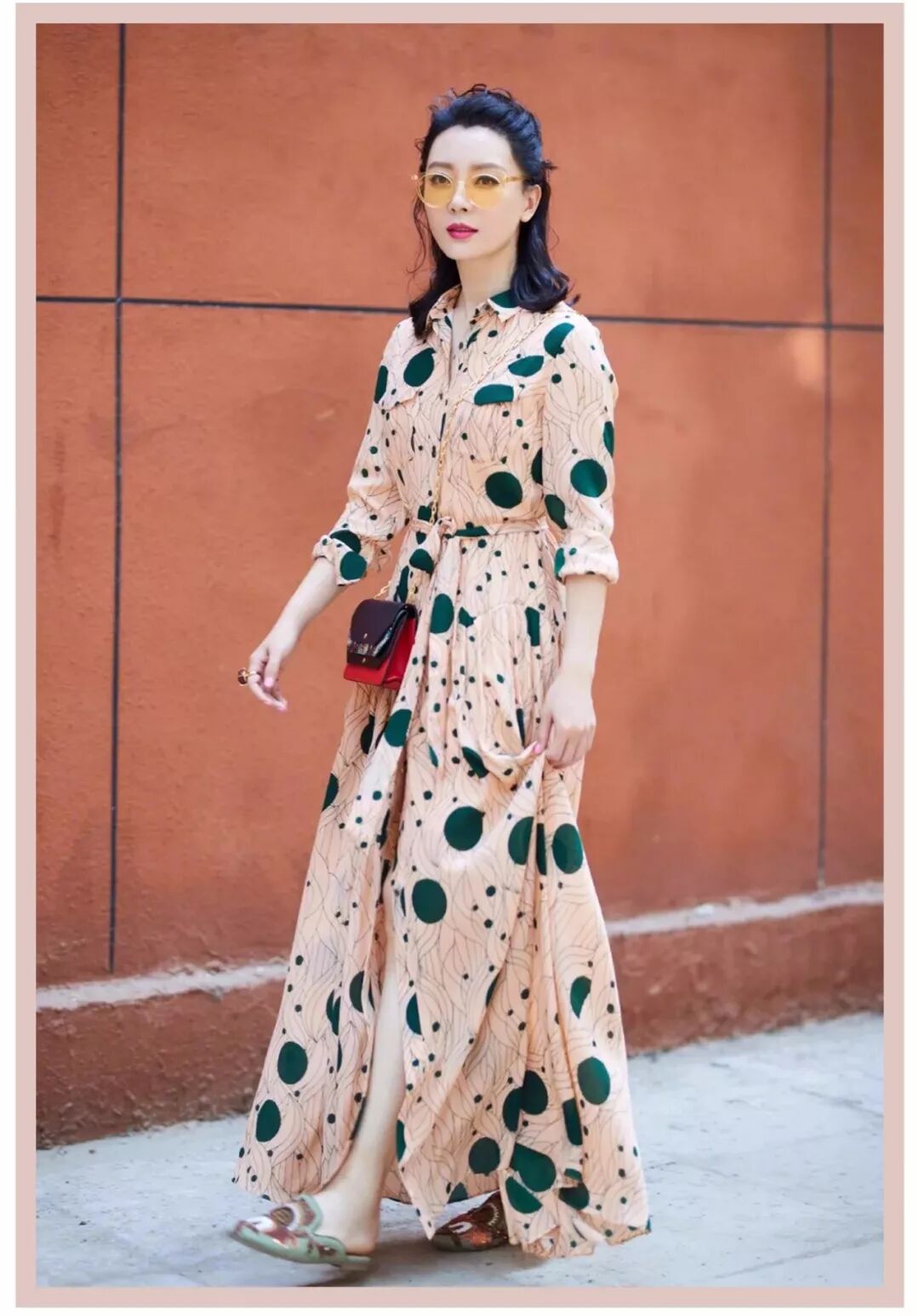 复古女青年们也许更爱波点连衣裙。长过脚踝的裙子,更有灵动飘逸感。