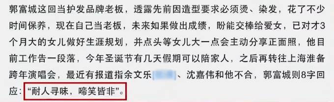 随后,郭富城在另一场活动上回应“耐人寻味,啼笑皆非”。