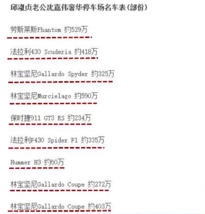 各位自行感受一下沈嘉伟的名下豪车,劳斯莱斯、法拉利、林宝坚尼。。。