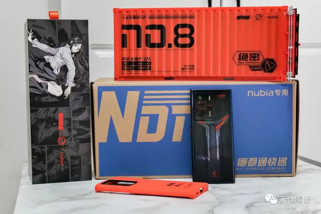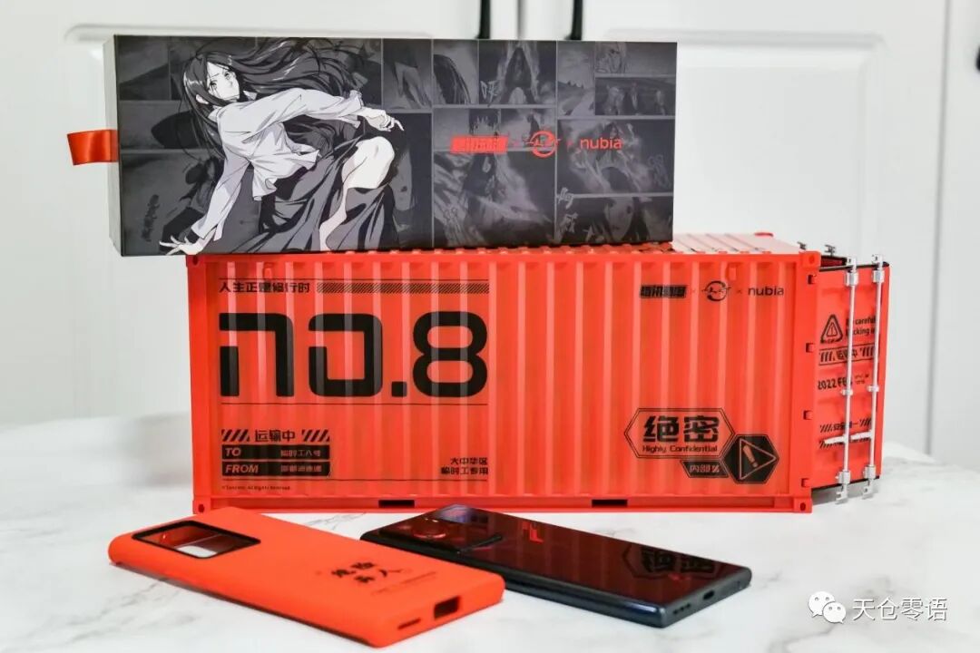 包装盒非常大,标有努比亚专用的“哪都通快递”的设计,运用了动画中“哪都通快递公司” 的形象,打开之后是一个标有“绝密”的集装箱。