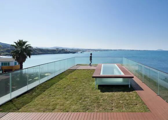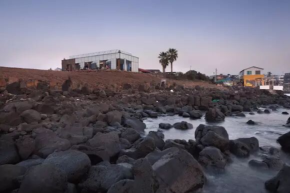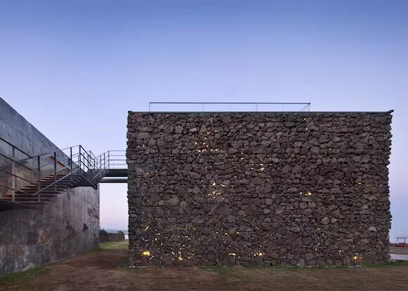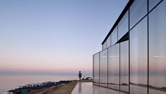 ►当玻璃外墙映出海边美景,石墙又和防波堤要想呼应,整个咖啡馆建筑本身充分体现了济州岛的海边之美。