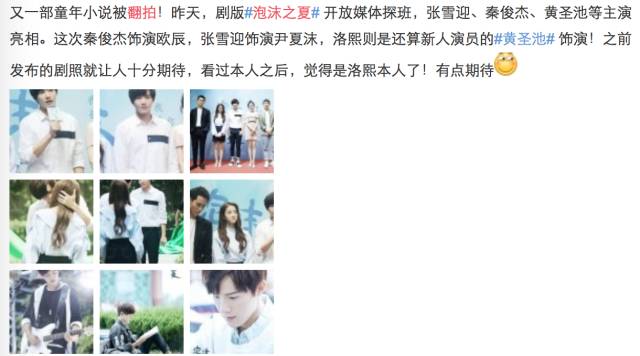 前几天,微博上传出消息:童年小说经典《泡沫之夏》确定翻拍,欧辰和洛熙分别由秦俊杰和新人黄圣池饰演。