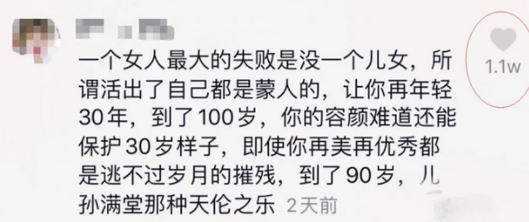 你未必非要在婚姻中讨生活, 如果没有遇到真正动心的,不要凑合,宁缺毋滥, 因为,那是个要和你每天相处十几个小时的人, 你的幸福与否很大程度上取决于这个人。 你结婚,我支持;你不育,我支持;你离婚,我支持;你不婚,我同样支持。 无论选择什么样的生活方式,适合你的就是最好的。