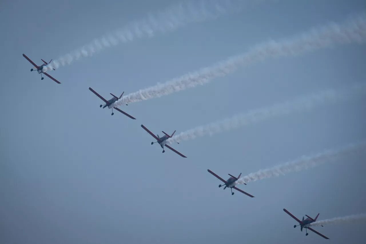 “第一通航”特技飞行队的范斯rv系列飞机编队飞行。记者 任勇 摄 通讯员 张敏