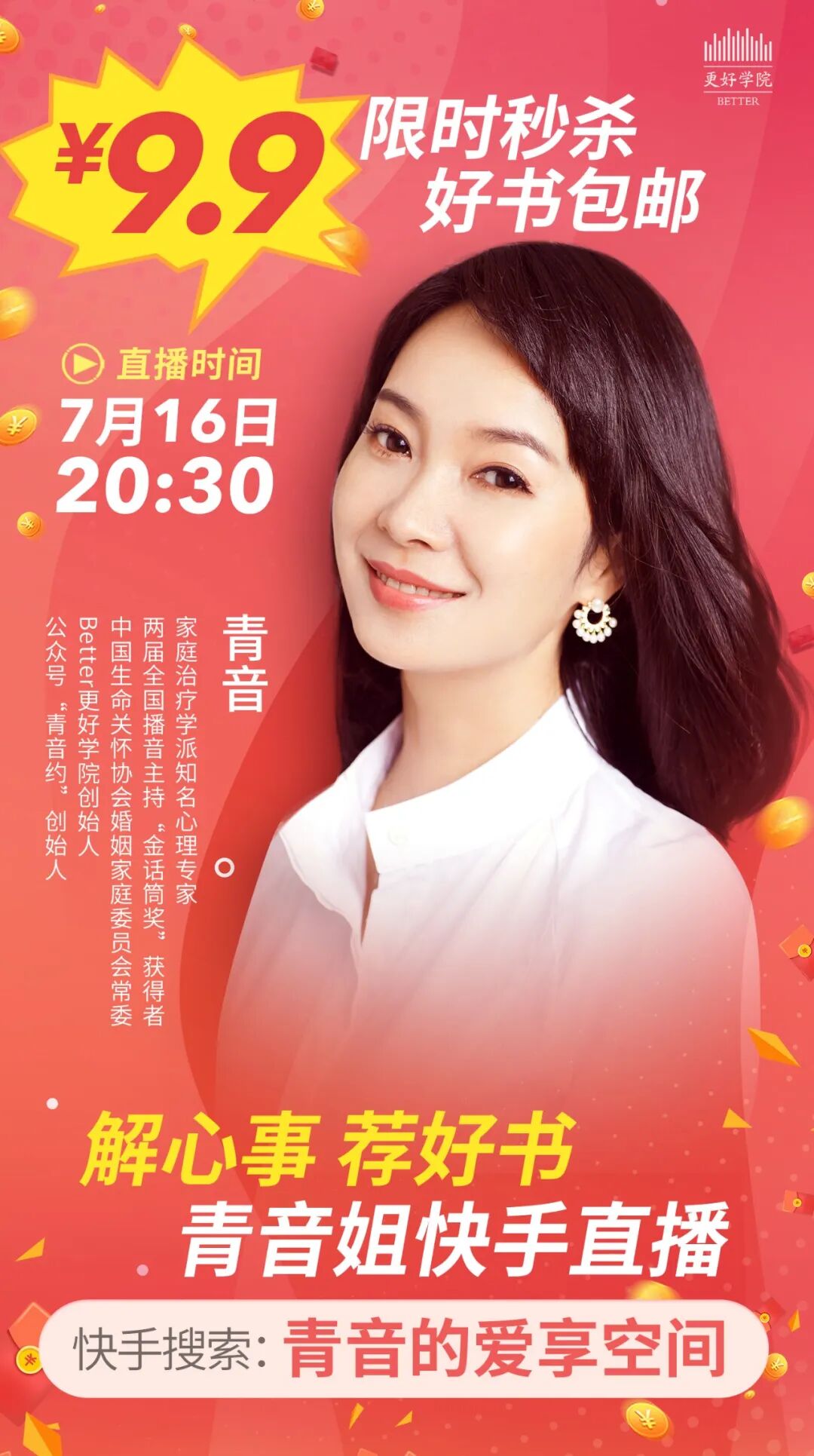 功能介绍:青音约,由心理专家+两届全国播音主持“金话筒”奖获得者青音创办的情感陪伴平台,倡导用轻心理学知识疏导情感和情绪困扰,陪你成为更好的自己。平台已培养“情感疏压顾问”上万人。