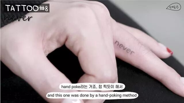 而韩艺瑟还特地提到了自己在佩戴结婚戒指的无名指上刻上了"never"的纹身,她说: