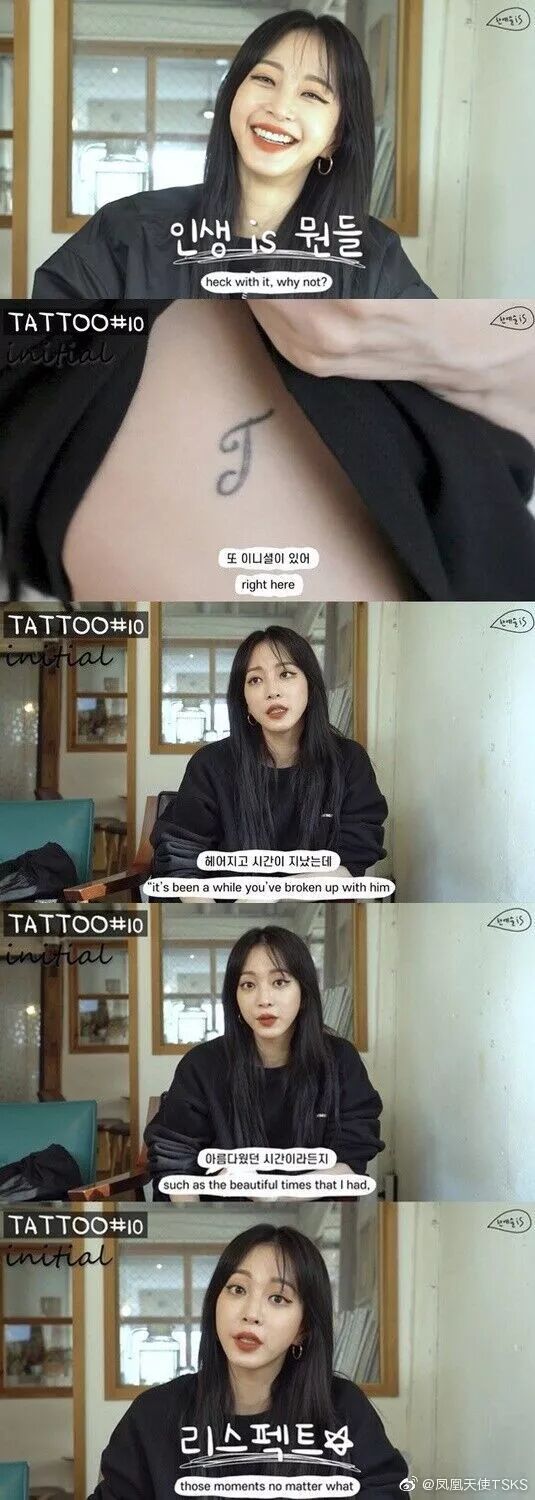 除此之外,韩艺瑟身上还有前任的英文首字母,韩艺瑟表示"虽然也有朋友问我分手了,还在身上还好吗,但那也是我的一部分","应该尊重美丽的时间,珍贵的回忆,以及我走过的路的所有瞬间"。