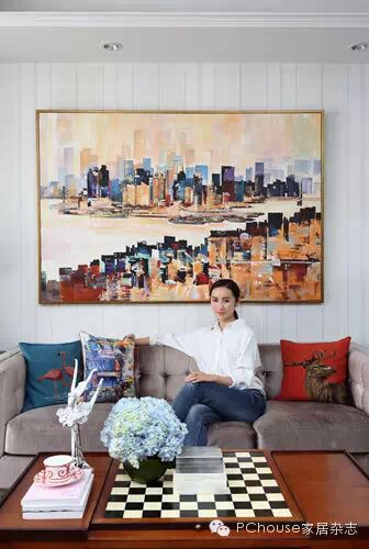 吕一的心中始终放不下对于故乡重庆的思念,家里随处可见重庆元素的物件。墙壁正中的画作是设计师根据吕一的想法特别请川美的朋友绘制的。画中的江畔,正是吕一和父亲母亲出生、生活的地方。描绘着重庆景色的靠垫常被她拥在怀里。