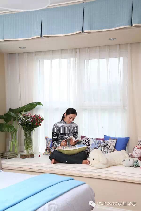 卧室的飘窗是吕一最喜欢的地方。宽敞、整洁,白纱与淡蓝的真丝窗帘清新柔美,大片的阳光和清风倾洒进来,眺望出去是片片碧绿树林。吕一常常坐在这里看书、听歌、发呆,身旁的小玩偶和鲜花做伴儿,在家的日子变得轻松恬淡。