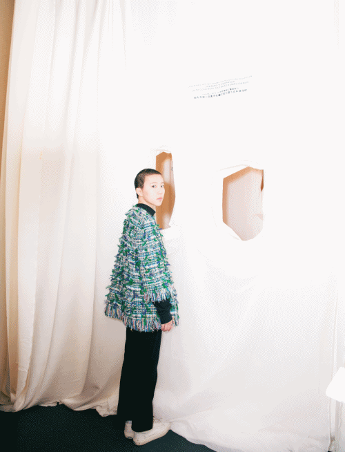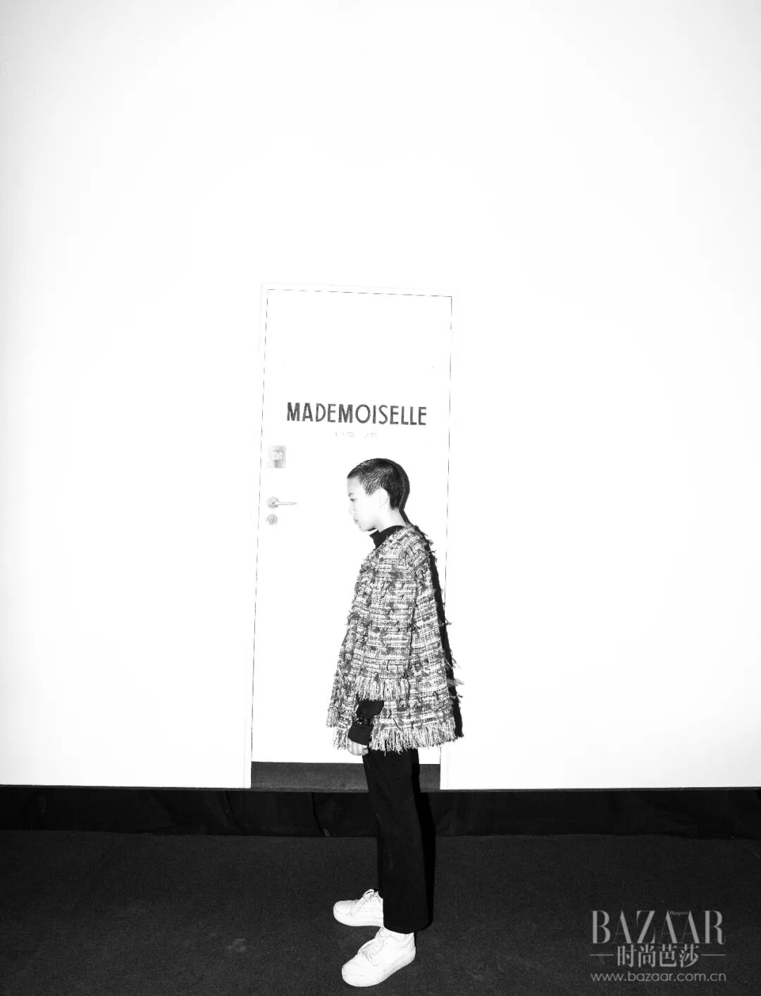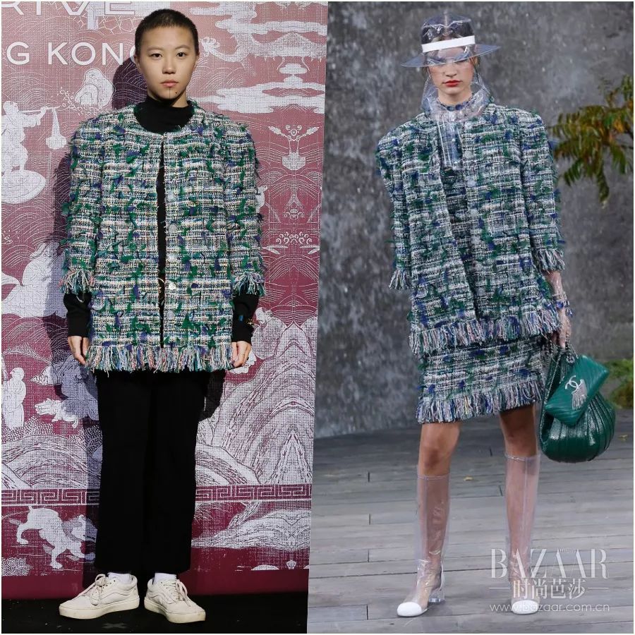 以新造型亮相的窦靖童身着CHANEL 2018春夏系列斜纹软呢外套搭配金属渐变手镯,酷到没朋友啊!
