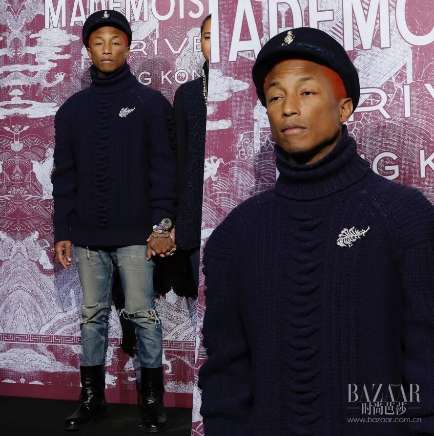 而当晚展览开幕,也是明星云集啊!香奈儿品牌形象大使Pharrell Williams出席活动,选用了刚刚发布的巴黎-汉堡高级手工坊系列简约大气的高领毛衣,尽显儒雅气质。